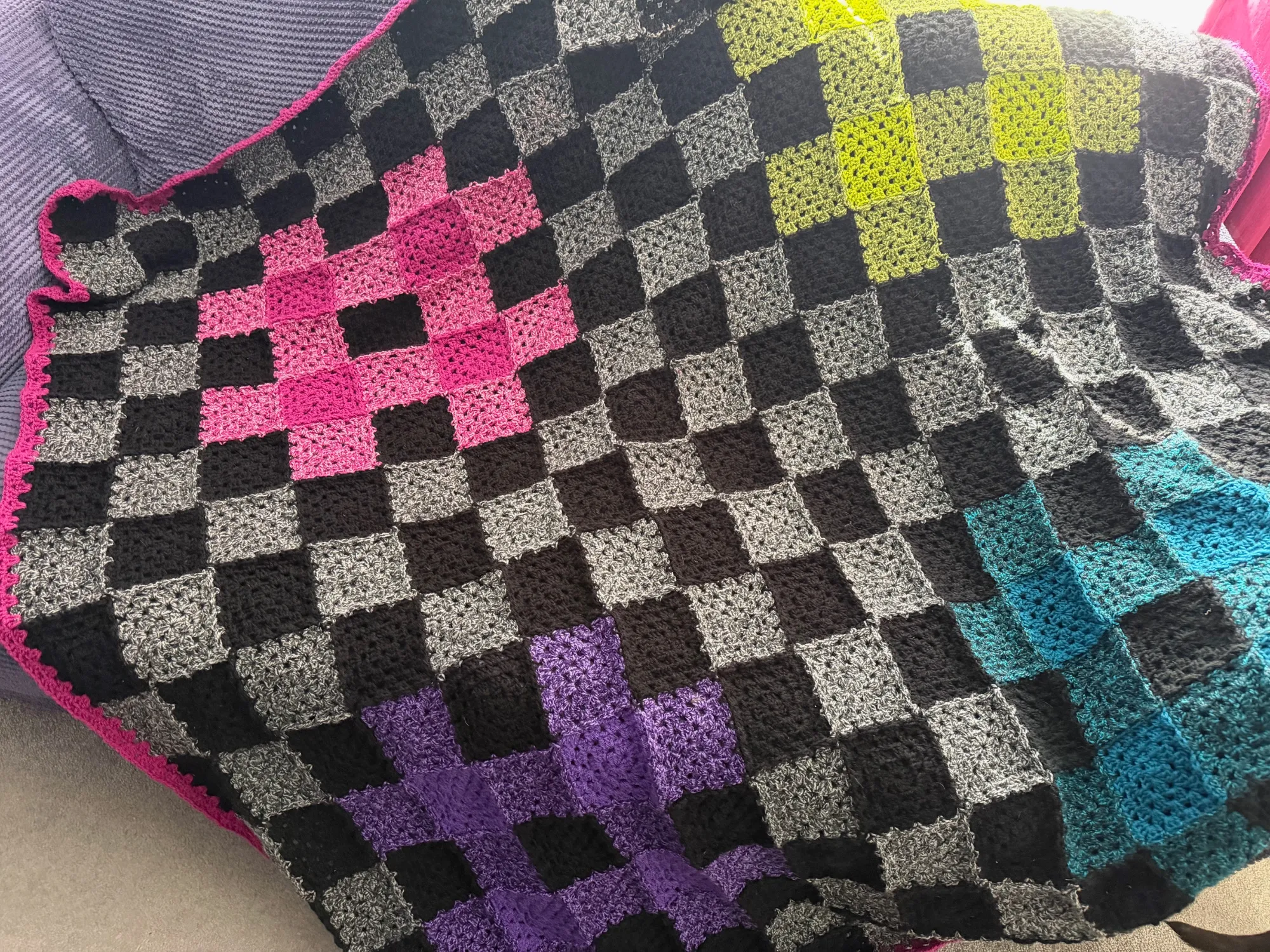Stained Glass Mosaic Blanket - made to create a pattern and video for my YouTube, one-off sample, won't be repeated.