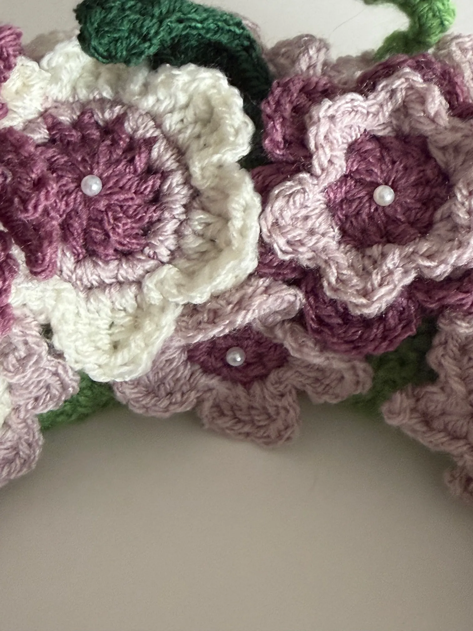An online course to make a Crochet Floral Wreath. In the 7 weeks we will learn how to cover the wreath ring in yarn as well as making 9 different flowers, 2 types of leaves and guidance on how to position them on your wreath.