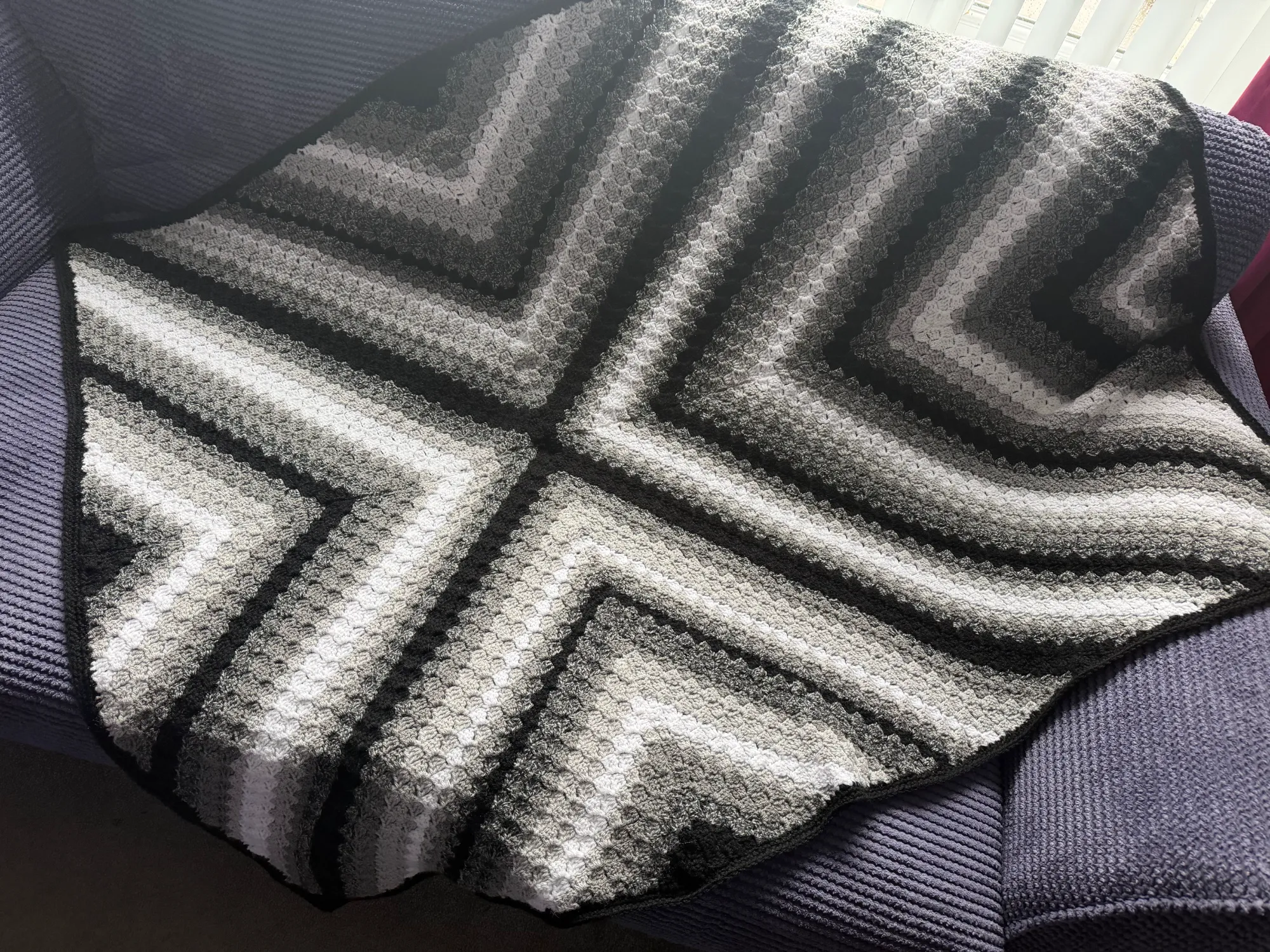 Monochrome Prism Blanket - made to create a pattern and video for my YouTube, one-off sample, won't be repeated.